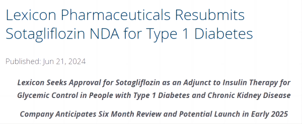 6月21日,Lexicon宣布,在與FDA進(jìn)行多次互動(dòng)并得到最近的反饋后,該公司已重新提交了索格列凈(sotagliflozin)的新適應(yīng)癥申請,作為胰島素治療的輔助藥物,用于1型糖尿病和慢性腎臟?。–KD)患者的血糖控制。