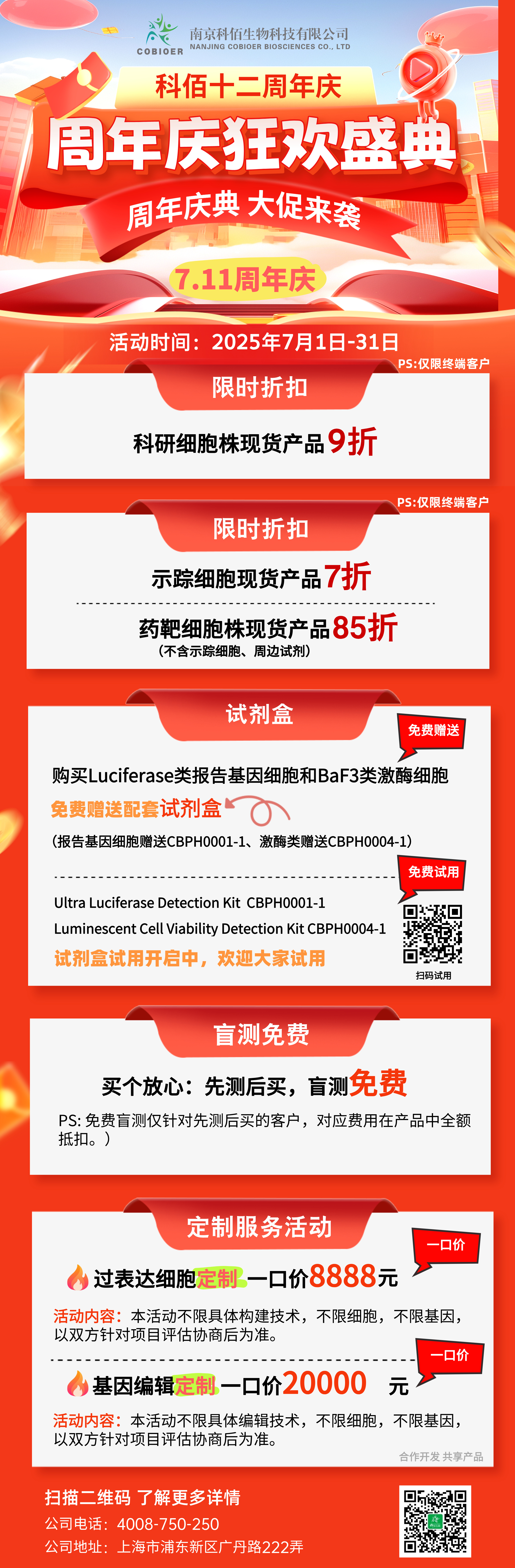 【周年慶狂歡】科佰十二周年慶,藥靶細(xì)胞系列產(chǎn)品,大促來襲