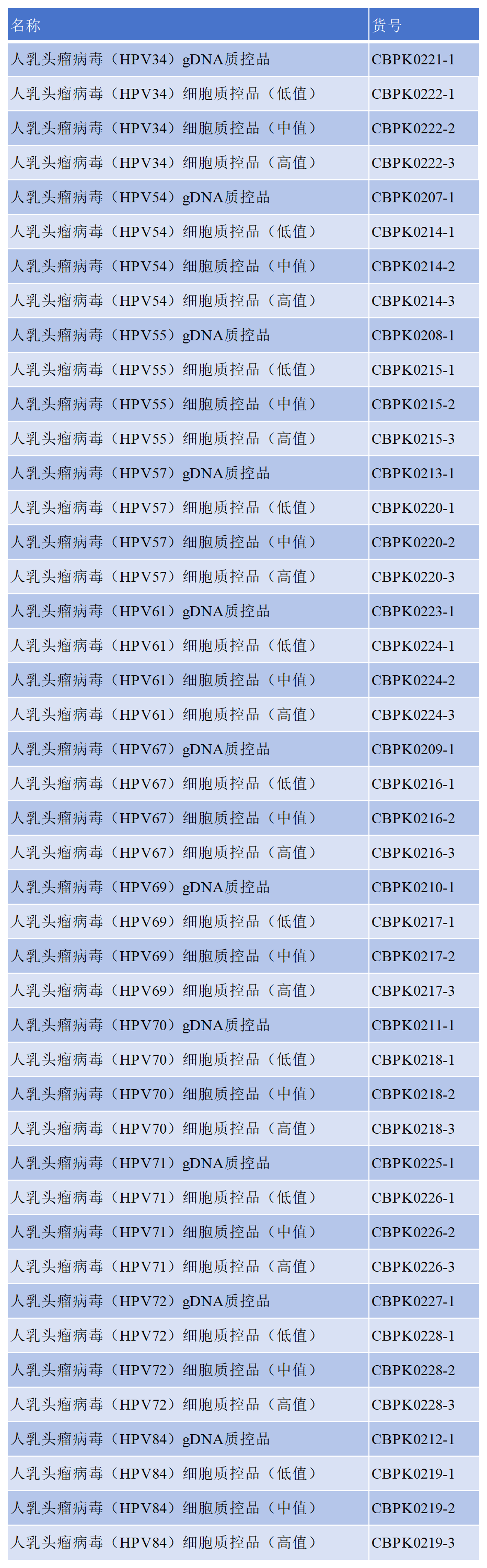 前期,科佰生物已經(jīng)推出了18種高危型和9種低危型的HPV分子診斷標(biāo)準(zhǔn)品,詳情可以點擊【免費試用】人乳頭瘤病毒HPV核酸檢測標(biāo)準(zhǔn)品新品上線,可申請免費試用 查看。