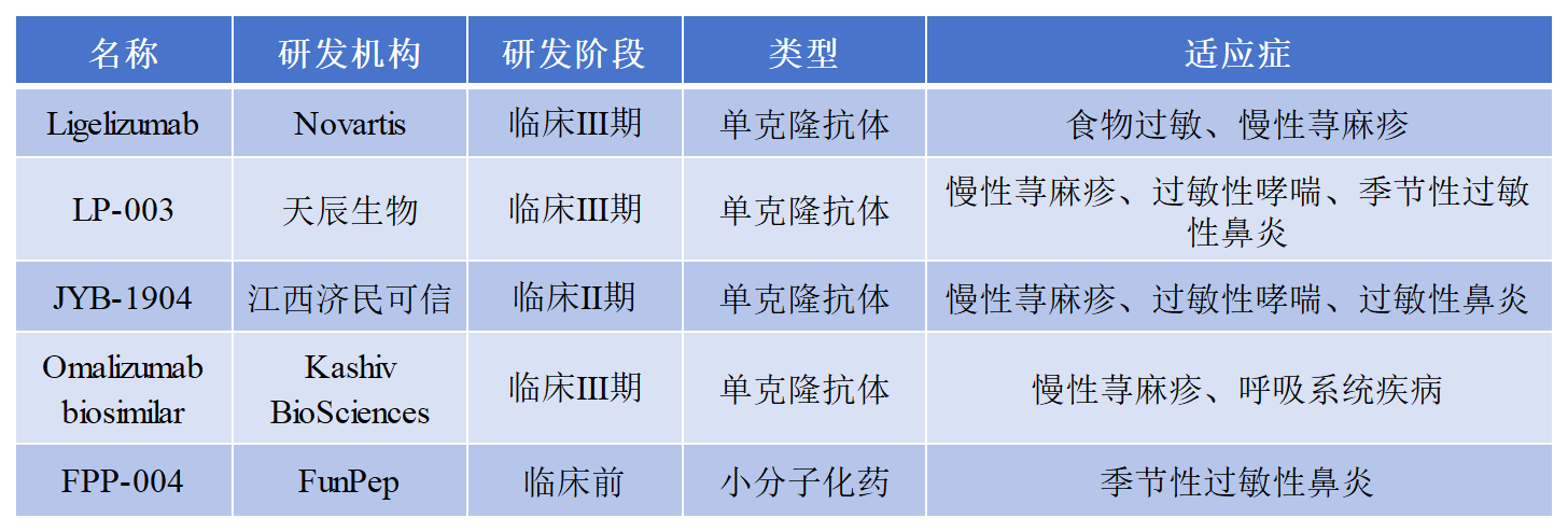 2025年3月2日,中國創(chuàng)新型生物制藥企業(yè)天辰生物醫(yī)藥(蘇州)有限公司公布了其自主研發(fā)的新一代抗IgE抗體LP-003治療慢性蕁麻疹的II期臨床中期數(shù)據(jù)。結(jié)果顯示,LP-003在關(guān)鍵療效指標上優(yōu)于現(xiàn)有抗IgE療法奧馬珠單抗,且展現(xiàn)出長效優(yōu)勢,或?qū)⒊蔀槿蚩笽gE治療領(lǐng)域的顛覆性藥物。據(jù)報道,Ligelizumab是諾華通過親和力改造的靶向Ig E的全人源IgG1k單抗,與奧馬珠單抗同為第一代IgE抗體,對IgE/FcεRI信號傳導(dǎo)阻滯明顯增強。JYB1904是濟民可信自主研發(fā)的靶向IgE重組人源化單克隆抗體創(chuàng)新藥,研究結(jié)果顯示其親和力更高,人源化程度更高,具有更優(yōu)的穩(wěn)定性。
