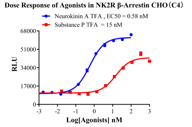 為了助力NK2R藥物的研發(fā),科佰生物及時開發(fā)了基于IP-One信號通路的NK2R細胞模型和基于β-Arrestin信號通路的細胞模型,用于候選藥物早期機理研究。