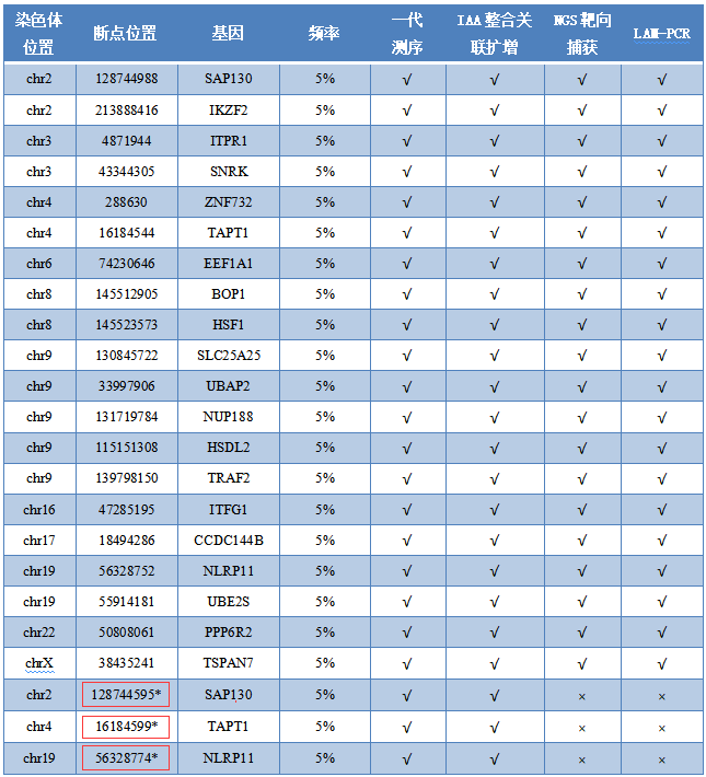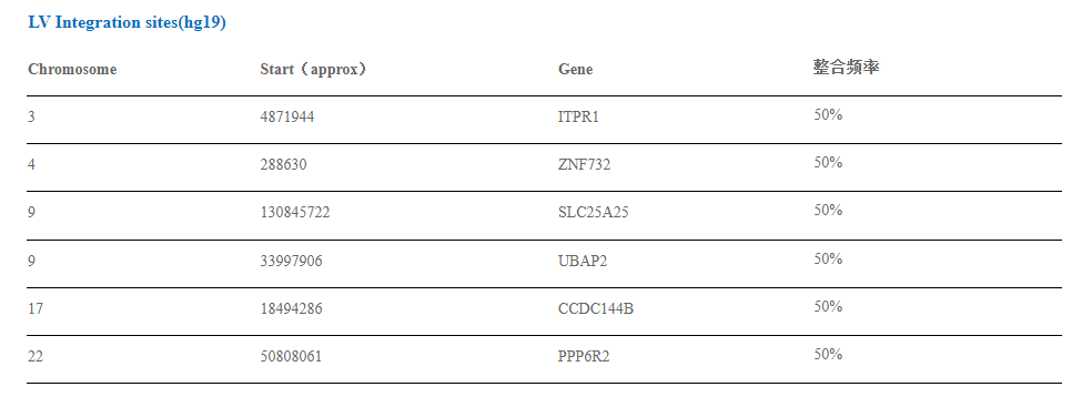 該產(chǎn)品選取公布的位點(diǎn)信息僅來自于31家實驗室大多數(shù)獲得的較為一致的結(jié)果,不排除有一些潛在的未被公布,對一些復(fù)雜的非典型的整合和插入方式(例如一端或部分LTR發(fā)生缺失的整合位點(diǎn))可能存在漏報;