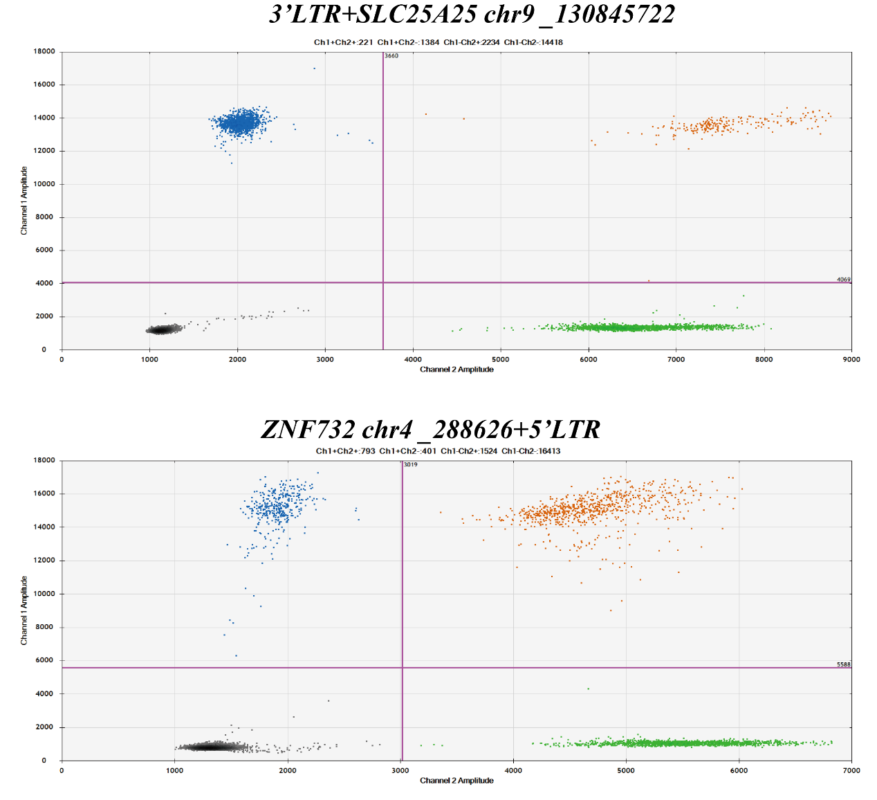 五步正交驗證(NGS(整合關(guān)聯(lián)擴(kuò)增技術(shù)(IAA,靶向捕獲, LAM-PCR)+ Sanger確認(rèn) + dPCR定量),確保位點(diǎn)序列與頻率的準(zhǔn)確性。在驗證LTR整合基因組位點(diǎn)的基礎(chǔ)上,進(jìn)一步驗證了載體上其他基因序列在基因組上的非典型整合位點(diǎn)。