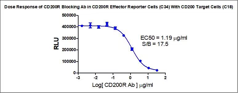 Figure 1. Dose Response of CD200R Blocking Ab in CD200R Effector Reporter Cells (C34) With CD200 Target cells (C18).