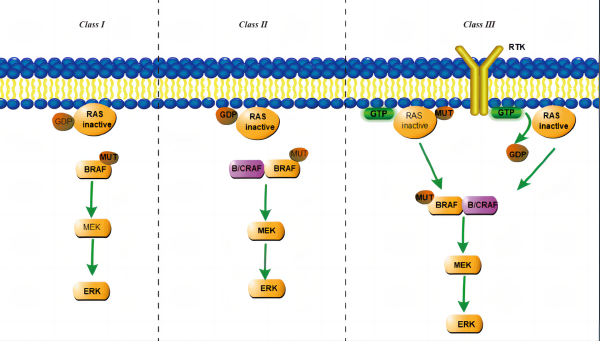 BRAF突變根據(jù)活化的機制不同,分為三種類型: