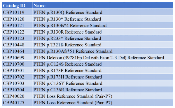 科佰生物可以提供PTEN突變類型的診斷標(biāo)準品,保證診斷方法的檢測限、靈敏度、穩(wěn)定性。