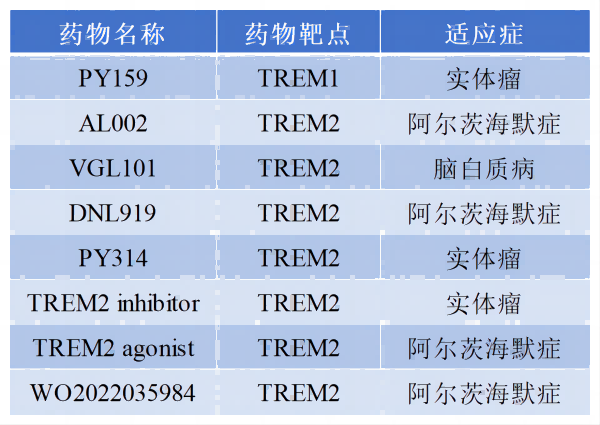 目前,針對TREM1和TREM2的研究主要集中在癌癥和阿爾茨海默癥領(lǐng)域。TREM1抑制劑可作為治療慢性炎癥和癌癥的潛在治療策略,TREM2則在阿爾茨海默癥的發(fā)展中起著關(guān)鍵作用,被確定為治療靶點(diǎn)。