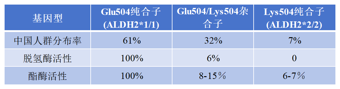 同時東方人中高發(fā)生率的急性酒精中毒也與該突變有關(guān)。突變后,酶活性缺失或者降低,導(dǎo)致乙醛在肝臟內(nèi)大量累積,會導(dǎo)致喝酒后產(chǎn)生臉紅、頭暈、心跳加速等,嚴(yán)重者甚至?xí)?dǎo)致酒精性肝病、癌癥(肝癌、消化道癌、胃癌)等不良反應(yīng)。