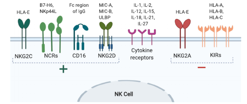 NKG2A是單跨膜的II型膜糖蛋白的C型凝集素超家族的成員,包含胞內(nèi)域、跨膜和細(xì)胞外凝集素樣結(jié)構(gòu)域。胞內(nèi)域有兩個(gè)ITIMs,參與抑制信號(hào)轉(zhuǎn)導(dǎo)。NKG2A是自然殺傷細(xì)胞(NK)和CD8+ T細(xì)胞的關(guān)鍵免疫檢查點(diǎn)。NKG2A與CD94作為異二聚體表達(dá),CD94也屬于C型凝集素超家族,NKG2A/CD94異二聚體受體的配體是非經(jīng)典MHC I類(lèi)分。結(jié)合后,NKG2A/CD94向NK細(xì)胞和CD8+ T細(xì)胞傳遞抑制信號(hào),阻斷NKG2A可有效釋放這些細(xì)胞毒性淋巴細(xì)胞的功能。