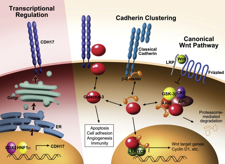 CDH17(Cadherin 17,LI-cadherin)序列由七個細胞外的鈣粘蛋白結(jié)構(gòu)域和一個非常短的細胞質(zhì)結(jié)構(gòu)域形成。與其他經(jīng)典的鈣粘蛋白不同,CDH17是一種鈣依賴性跨膜糖蛋白,可介導(dǎo)細胞在腸上皮中的細胞粘附。